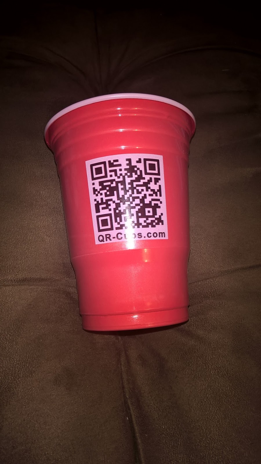 Each cup has a red exterior and a white interior. On the cup is printed a QR code that you scan with your phone. The instructions are to sit in a circle and you start with someone scanning the cup of someone else in the group you cannot scan your own cup.